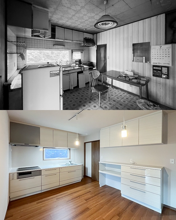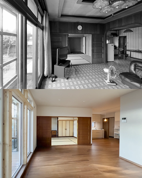 農家住宅としての機能を高めるため、使い勝手と居住性能の両面からアプローチした改修工事を行いました。