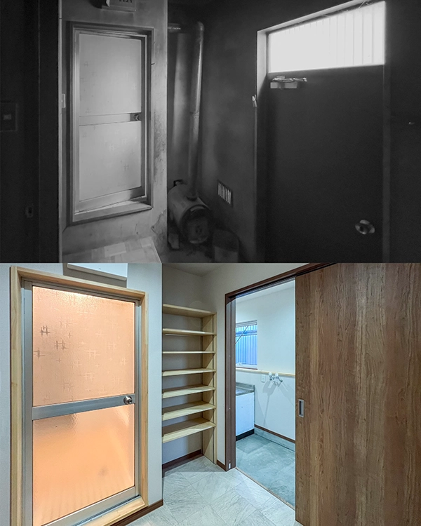 農作業を行うお客様のライフスタイルに合わせ、元々は手狭だった勝手口エリアを一部増築し、そこにSKなどの水栓設備を新たに設けることで、畑仕事の泥汚れを落としてから室内へ入れる、スムーズな帰宅動線を実現しました。